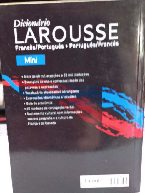 Descrição: Anúncio especial com 20 unidades do Mini Dicionário Larousse OUI, Francês/ Português - Português/ Francês.- CONSULTE A DISPONIBILIDADE DE ANÚNCIOS COM QUANTIDADES MAIORES OU MENORES.- Atualizado conforme o novo acordo ortográfico- Mais de 40 mil acepções e 55 mil traduções- eexemplos de usoe contextualizaçãodas palavras e expressões- vocabulário atualizado e abrangente- expressões idiomáticas e locuções- guia de pronúncia- 60 modelos de cnjugação verbal- suplemento cultural com informações sobre a geografia e cultura da França e do Canadá.PRODUTO ADQUIRIDO DIRETO DA EDITORA, ALGUNS DOS EXEMPLARES PODEM ESTAR COM PEQUENOS SINAIS DE ARMAGENAGEM. Papel reciclável.