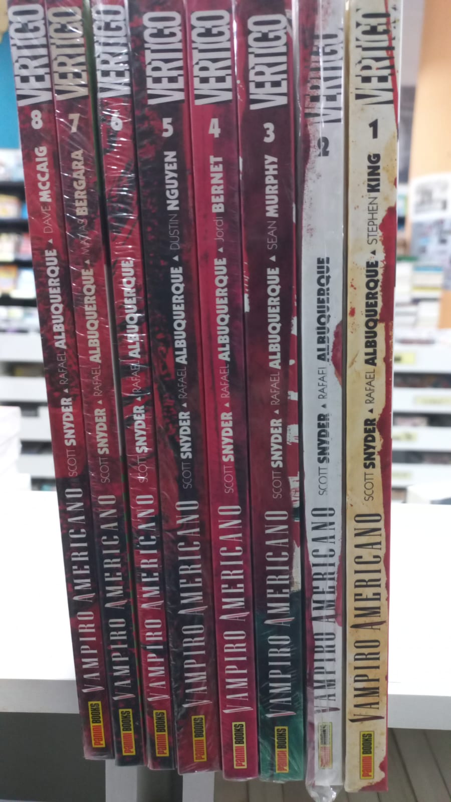 Descrição: HQ Vampiro Americano, 8 volumes edição de luxo. Coleção completa, capa dura em perfeito estado de conservação.Vampiro Americano (no original, American Vampire) é uma série de revistas de histórias em quadrinhos criada pelo escritor norte-americano Scott Snyder. As primeiras cinco edições apresentam duas histórias - uma escrita pelo próprio Snyder e a outra pelo romancista Stephen King, e ambas desenhadas pelo brasileiro Rafael Albuquerque. A partir da sexta edição, Scott Snyder permaneceu como o único escritor. Albuquerque passou a ser creditado como "co-criador" da série a partir da décima-terceira edição. Assunto: HQS (excesso lit)